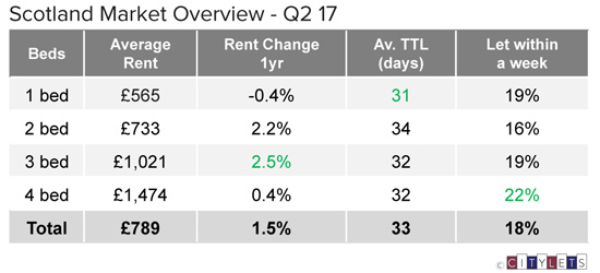 The latest Citylets quarterly report saw the Scottish Private Rental Sector (PRS) reach a new record high in Q2 2017 with average rents up 1.5% year on year (YOY) to £789 on average. Scotland Growth…